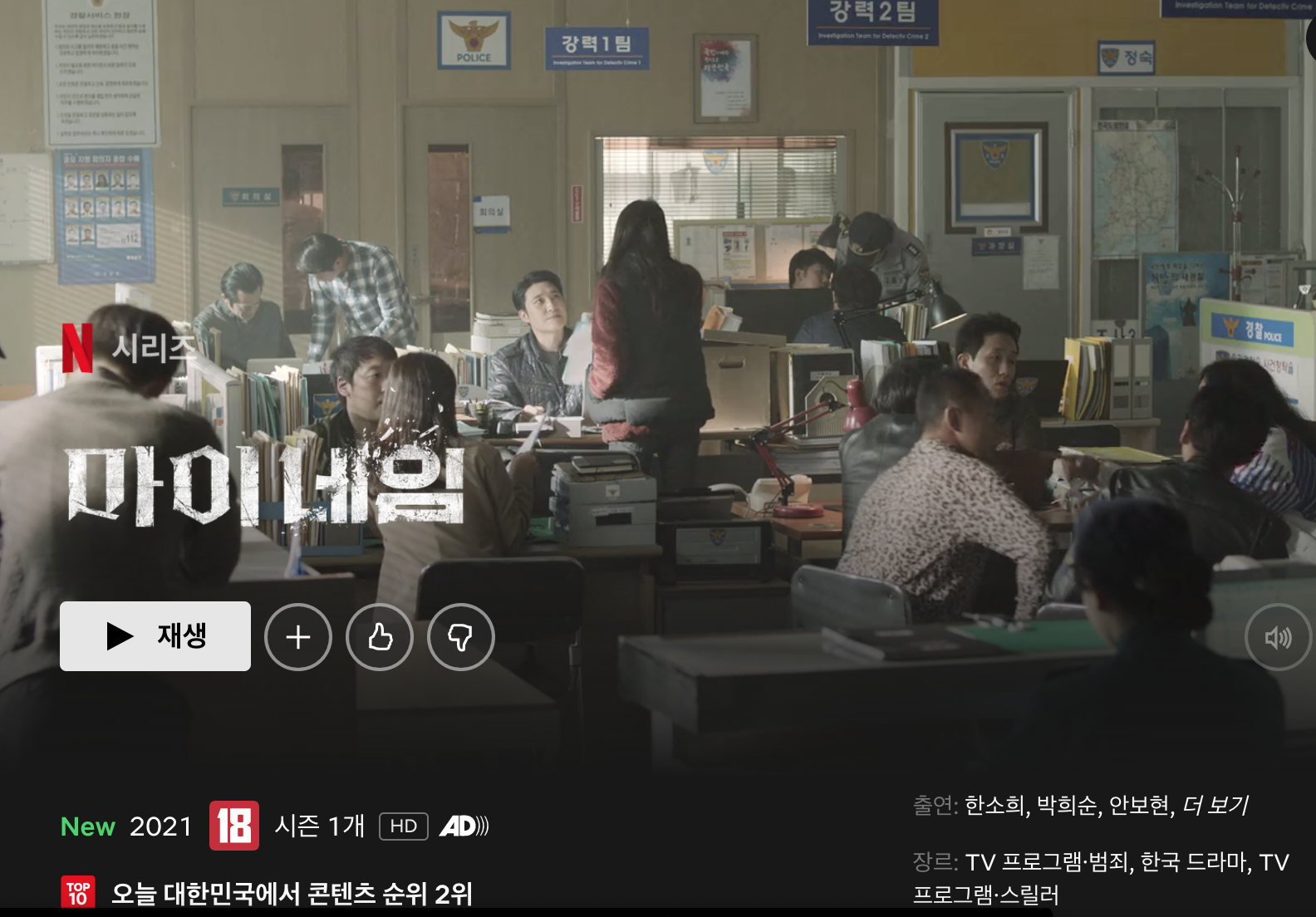 어제 10월 15일에 공개되었는데 벌써 오징어게임을 제치고 순위 2위에 올라있다.