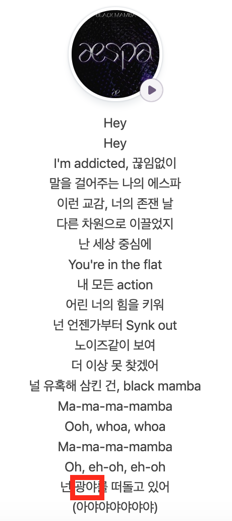 [Black Mamba 가사 중]