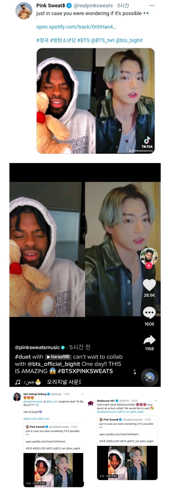 그건 바로, 핑크 스웨츠가 BTS 정국과 함께 콜라보를 했기 때문이죠.