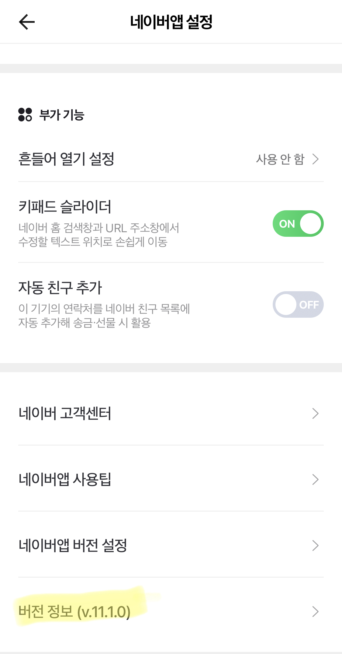 네이버앱의 버전을 확인해볼 필요가 있습니다.