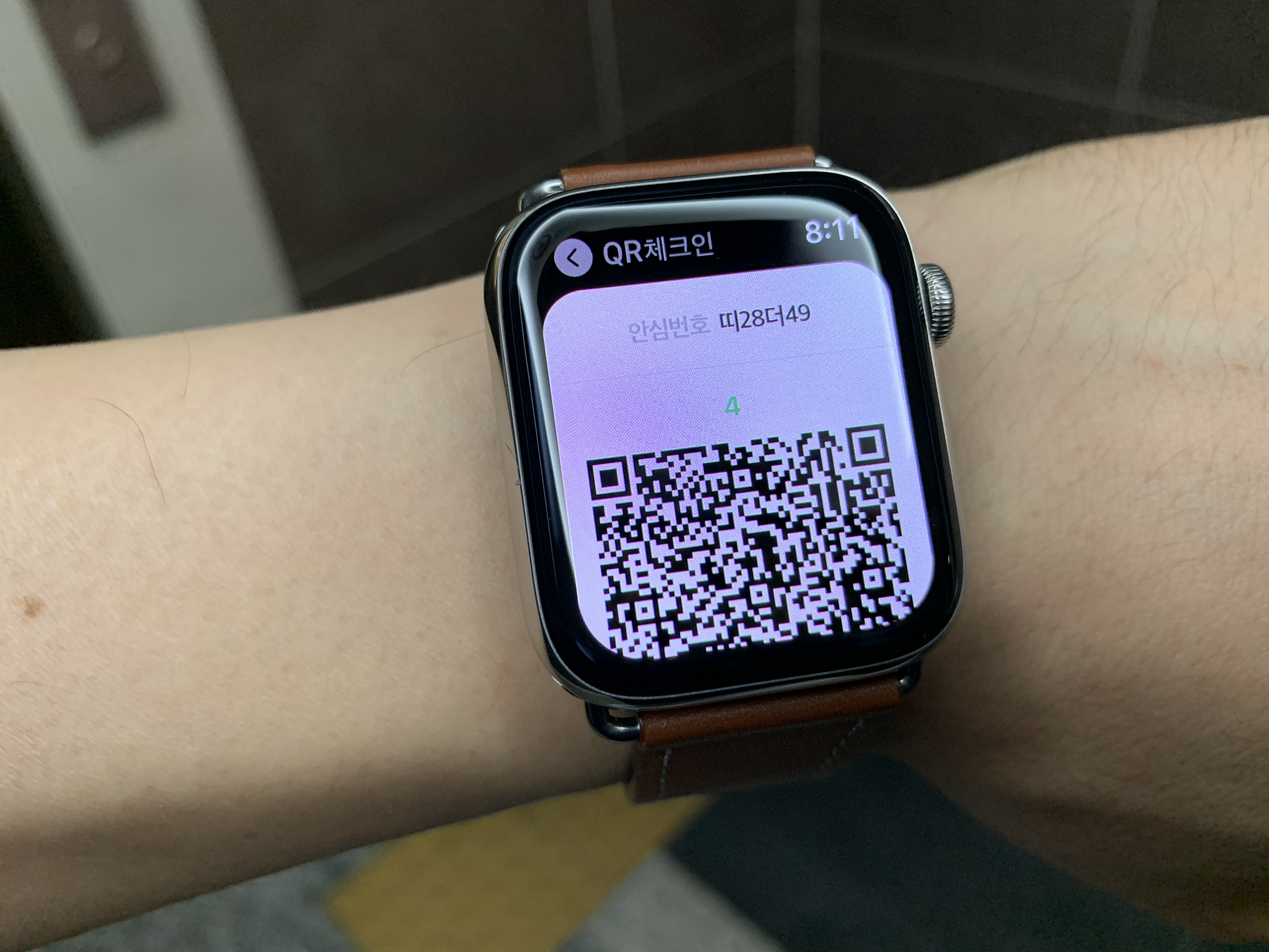 QR체크인 쓸일이 많다면 애플워치 페이스에 바로가기를 넣어두면 더 편리하겠죠.