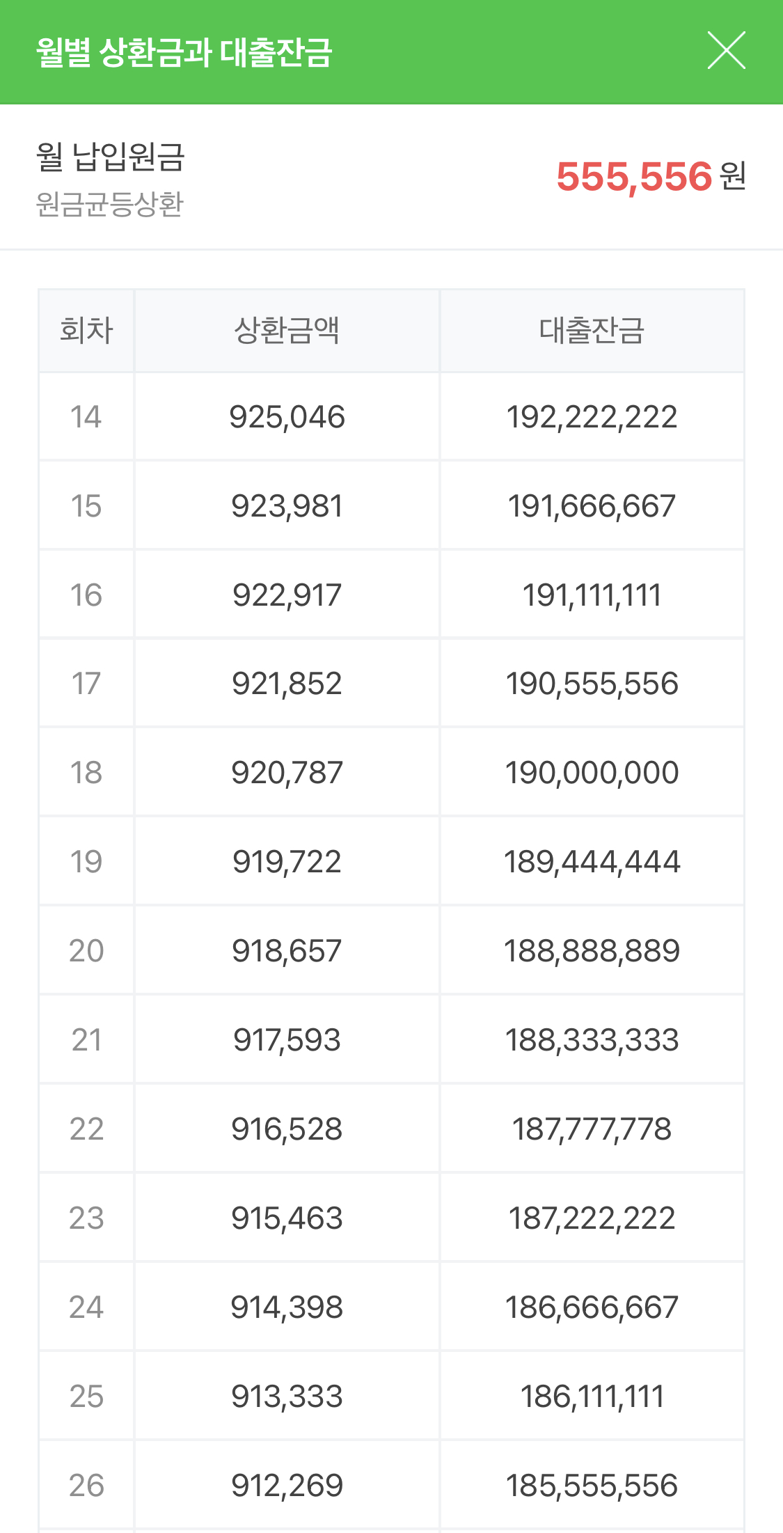 14회부터 26회도 마찬가지. 대출잔금은 점점 줄어든다.
