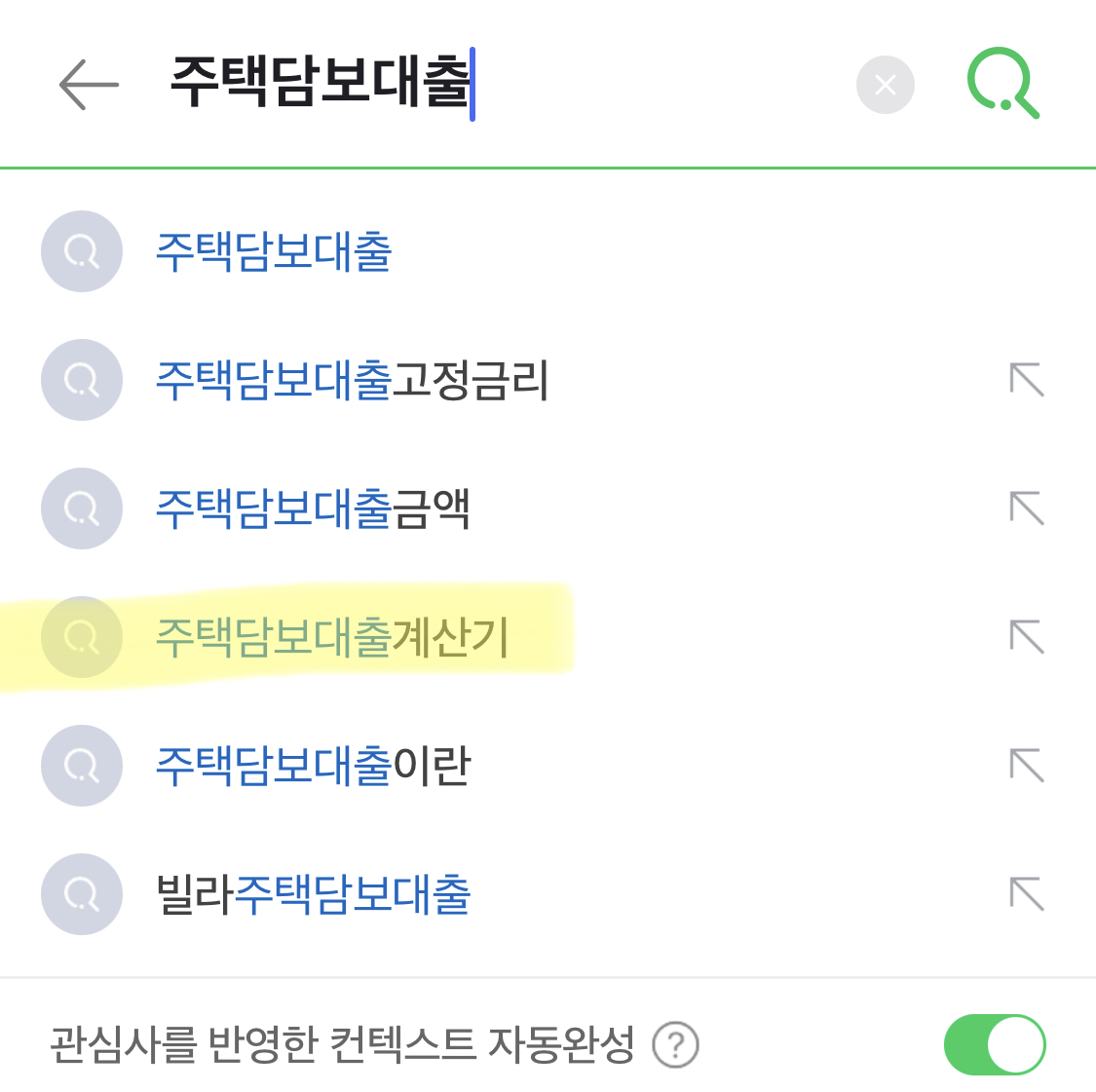 주택담보대출 까지만 쳐도 '주택담보대출 계산기'가 자동완성되어 나온다.