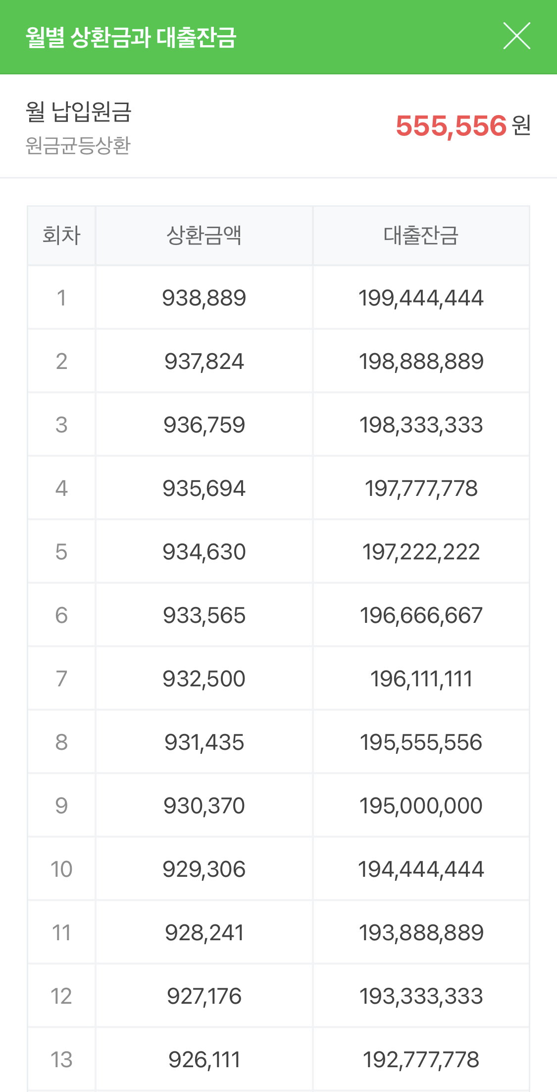대출원금 : 200,000,000원