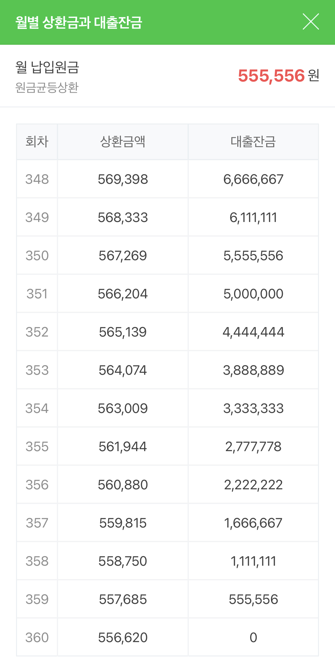 360회차에 마지막 원리금을 내면 모든 대출은 끝이 난다.