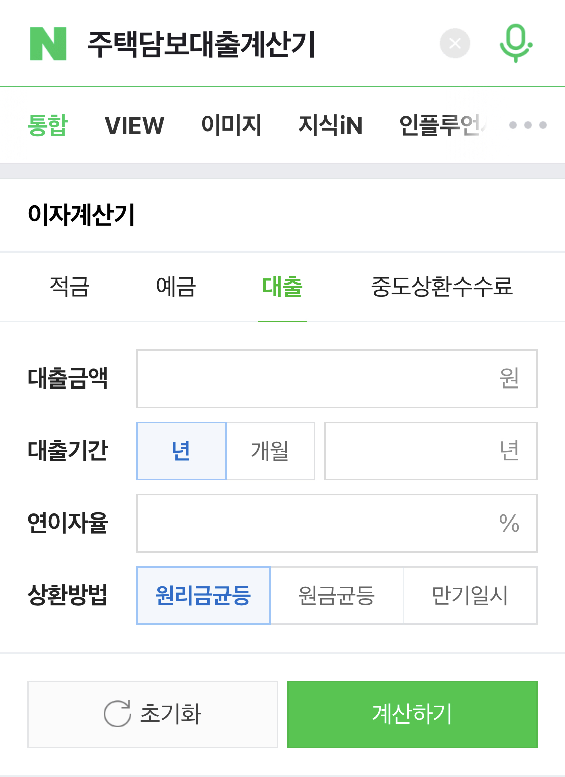 위 화면과 같이 이자계산기가 나온다.