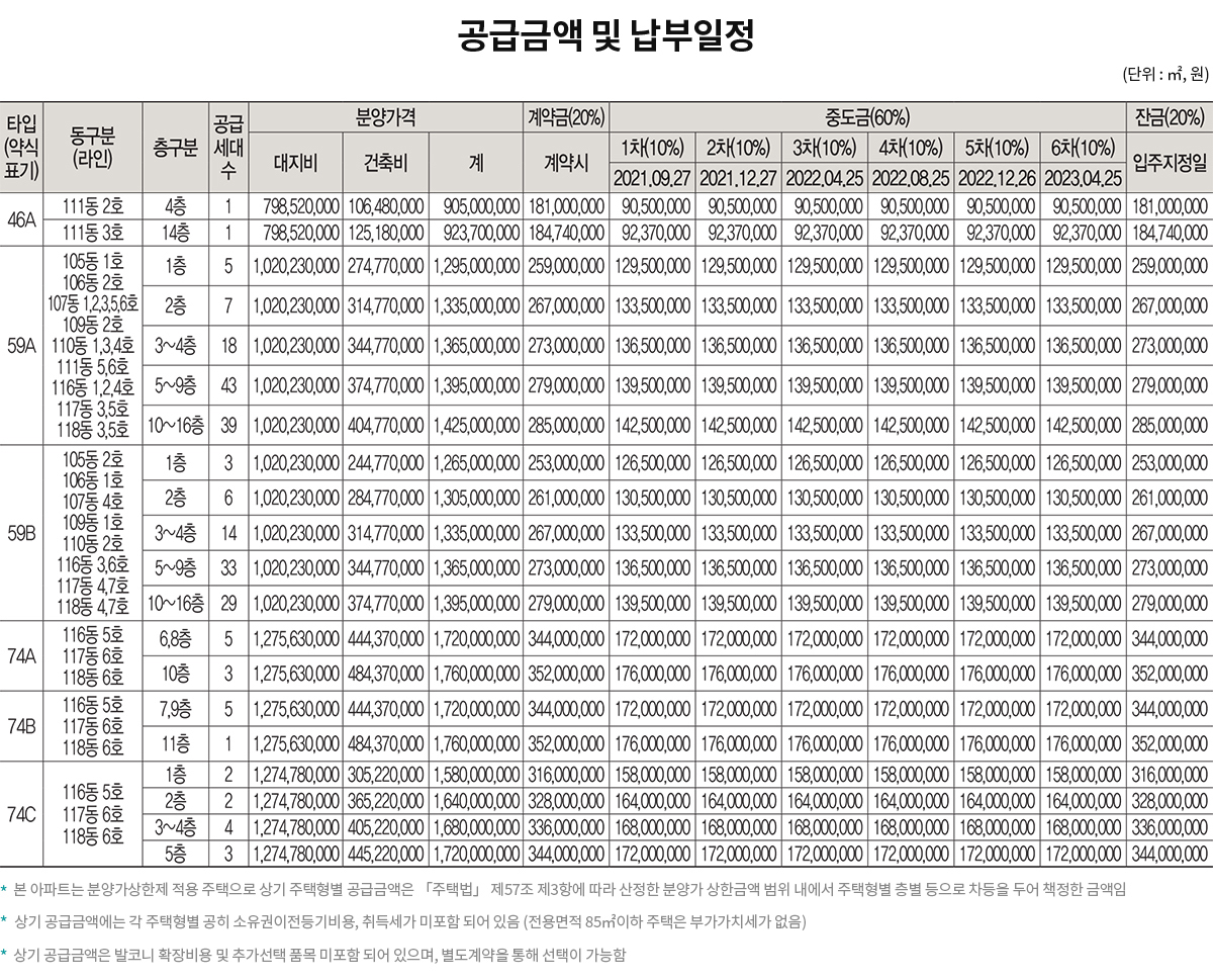 분양금액 : 최소 9억 500만원 ~ 최대 17억 2천만원