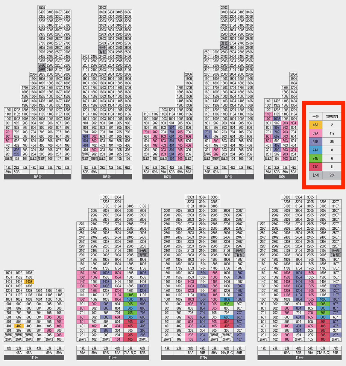 116동, 117동, 118동에만 일반 분양 물량이 들어가 있다.