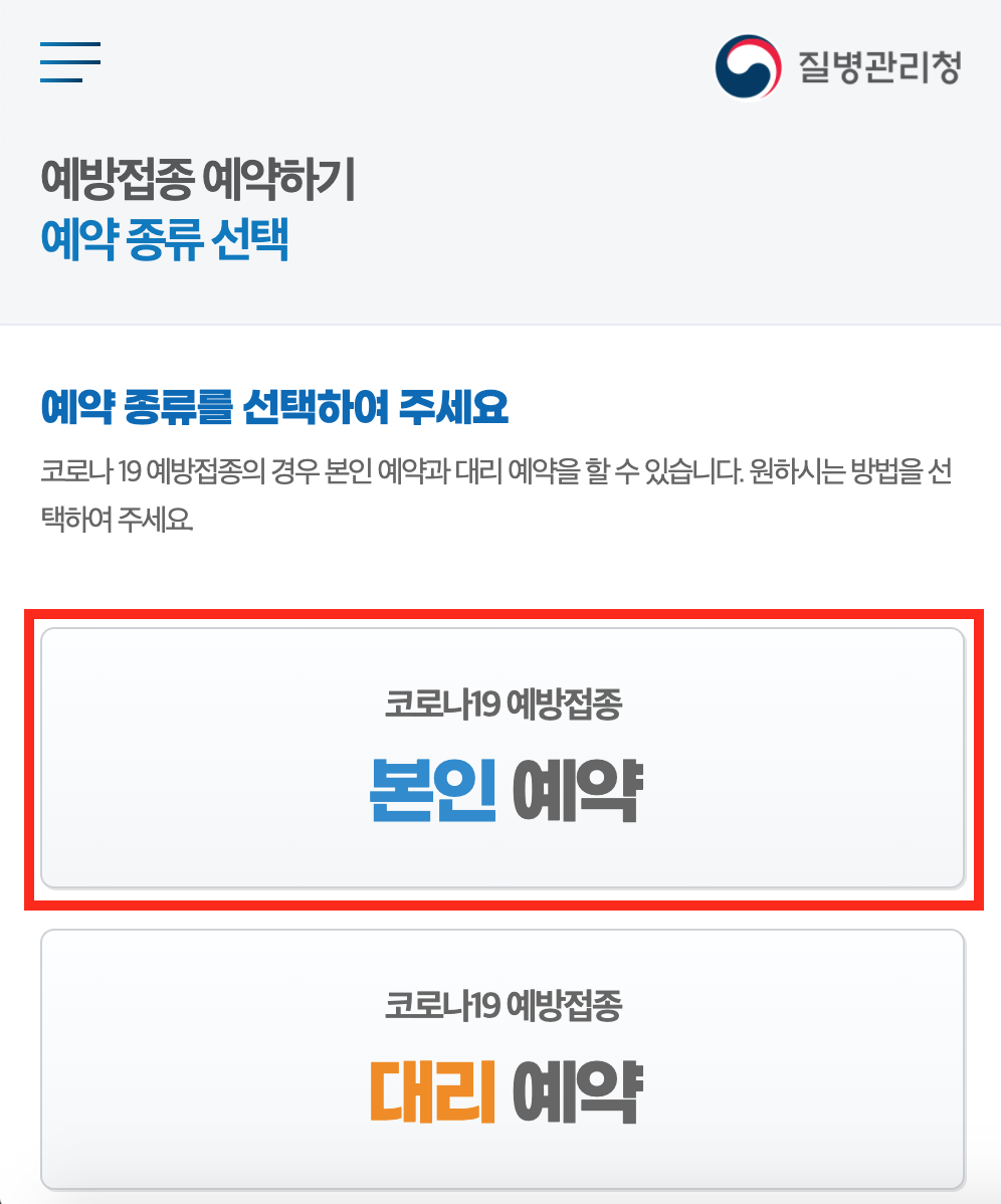 위 화면이 나오면 예방접종 예약하기를 누릅니다.