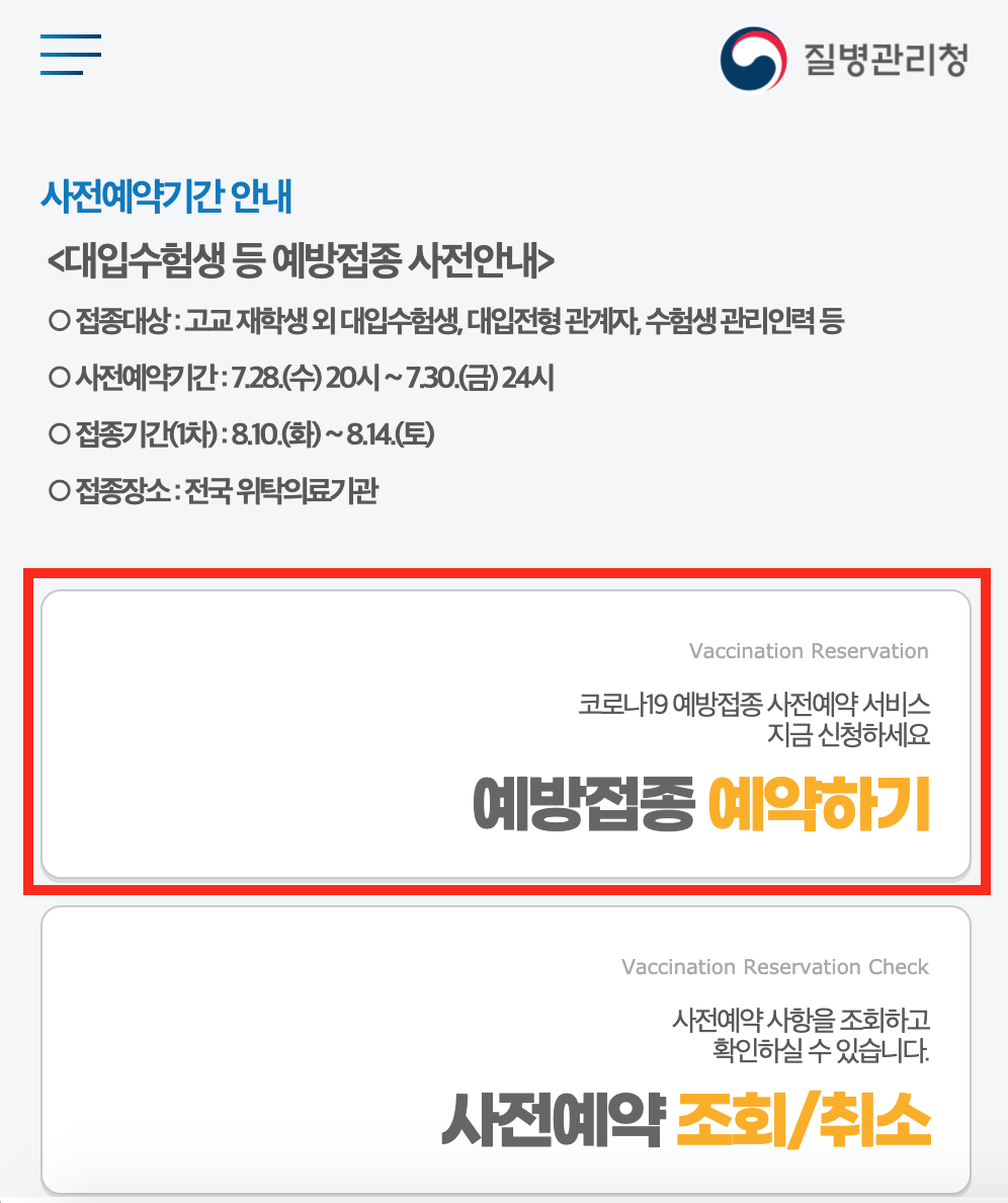 백신예약은 아래 링크를 누르면 예약할 수 있다.