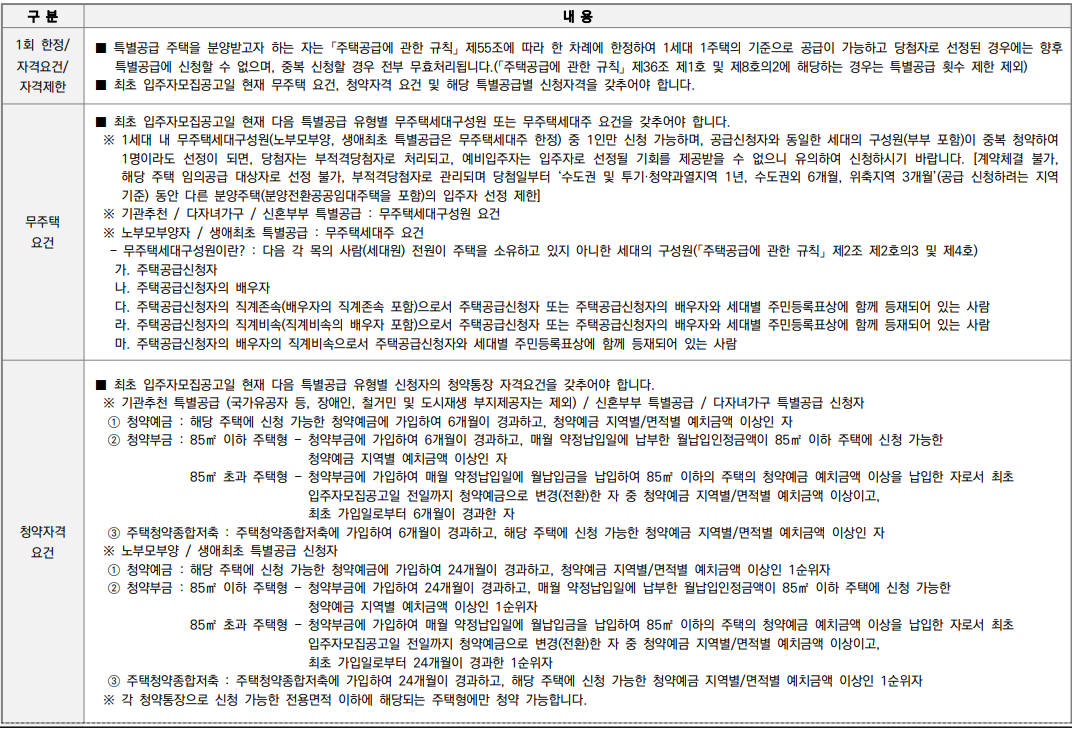 - 특별공급 유의사항